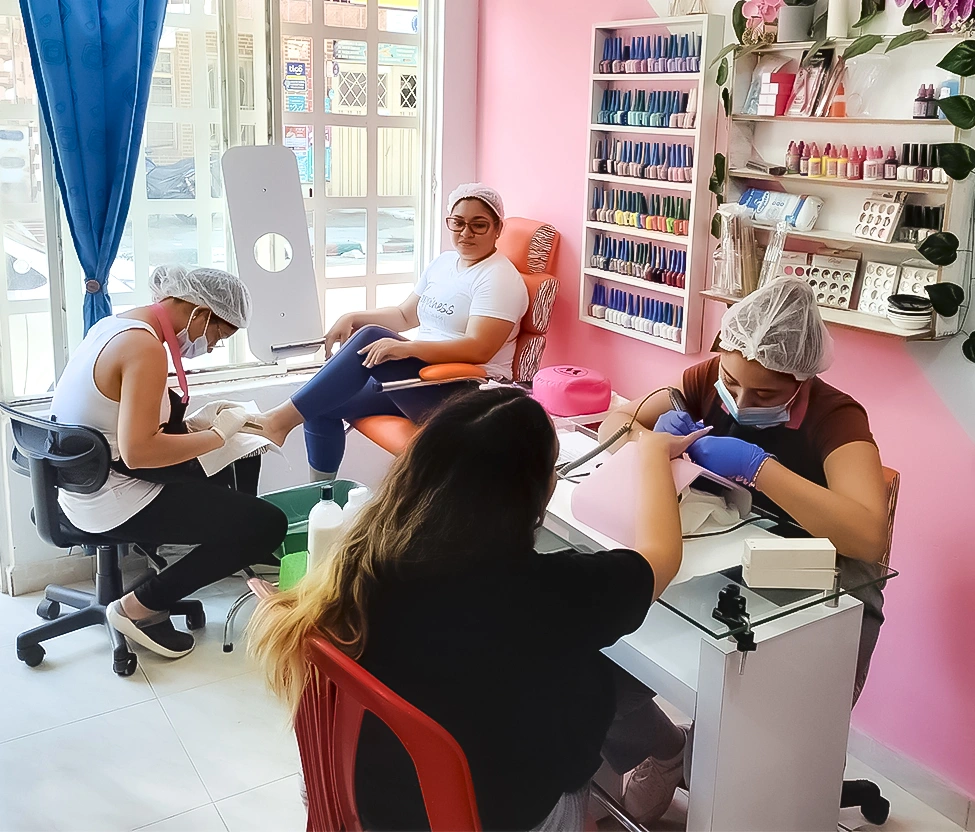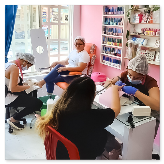 • Técnicas de manicure y pedicure con enfoque en higiene, seguridad y estética.